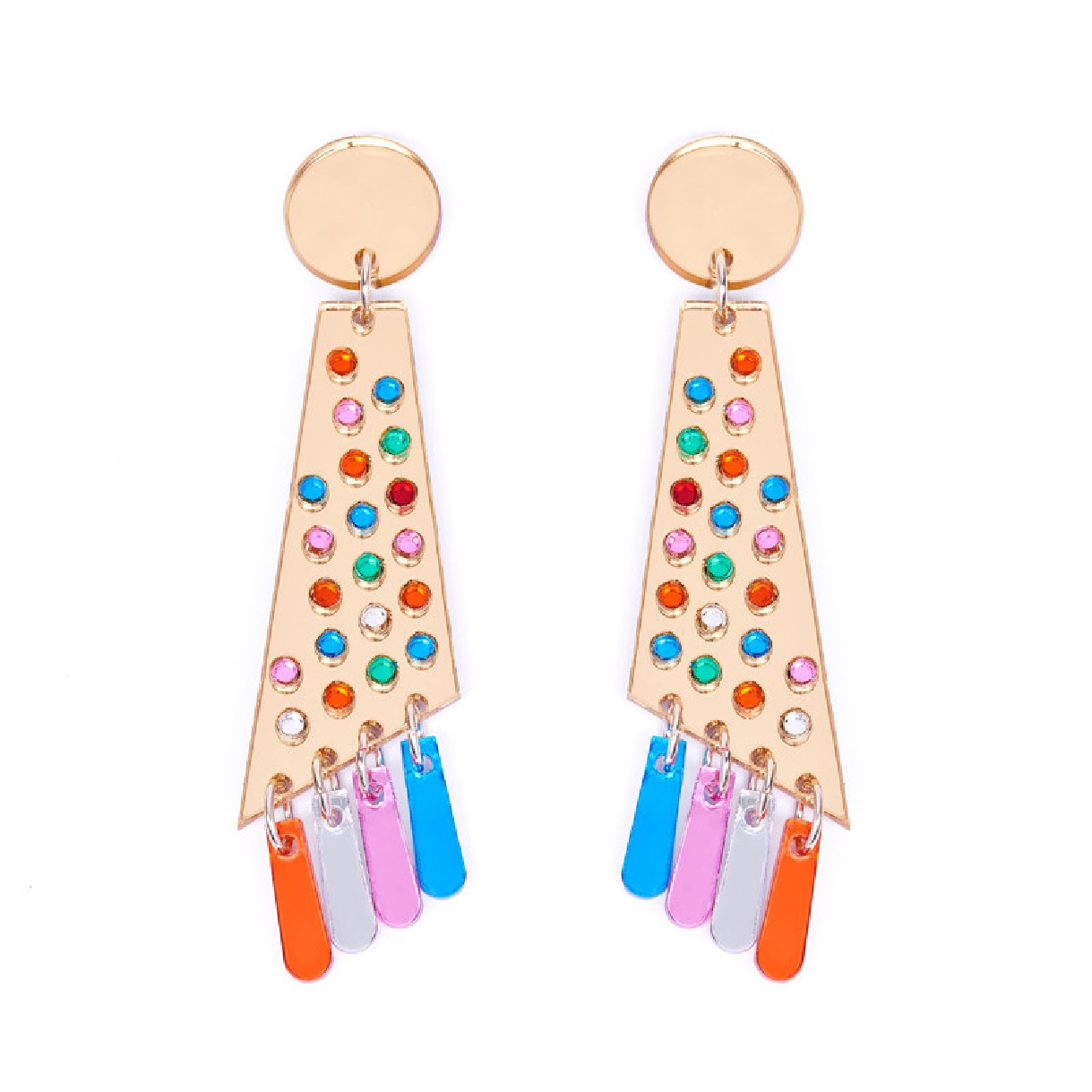 Material: Metacrilato espejo dorado, espejo celeste, espejo rosa, espejo plata, espejo naranja, espejo verde. Base en negro.