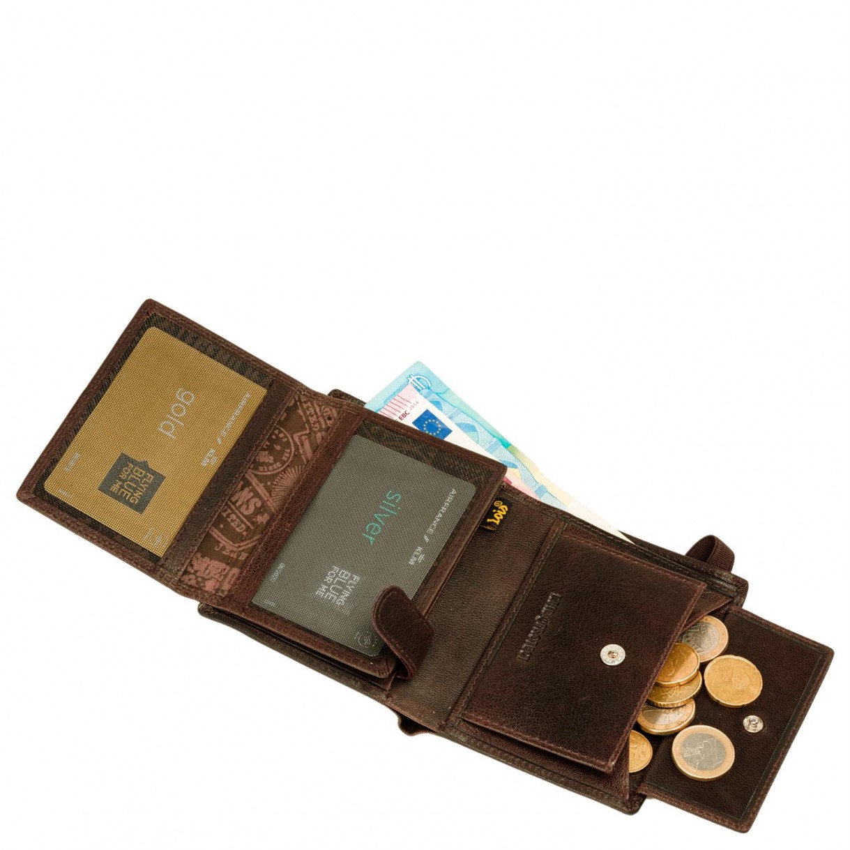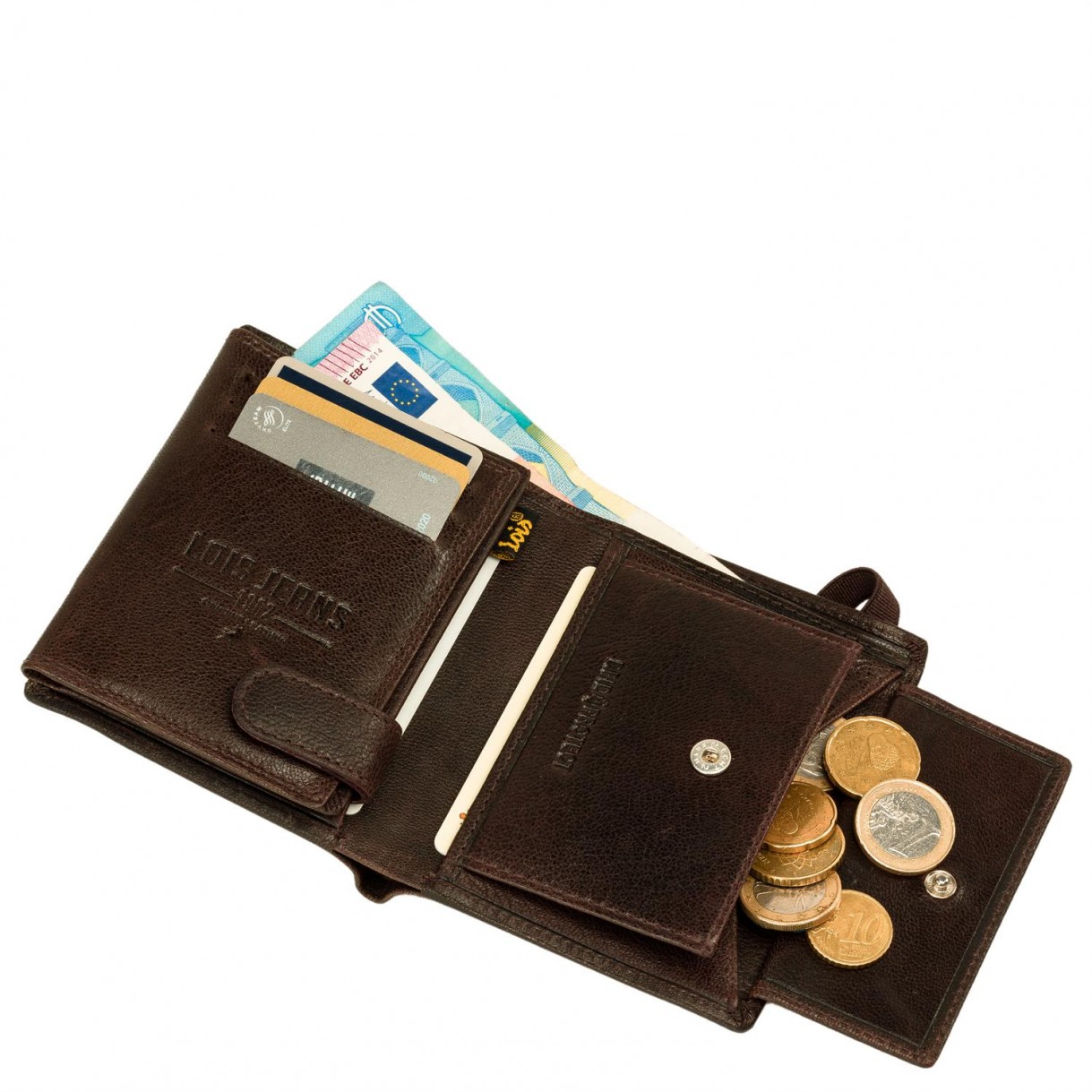 Múltiples compartimentos para tarjetas, billetes y monedas.