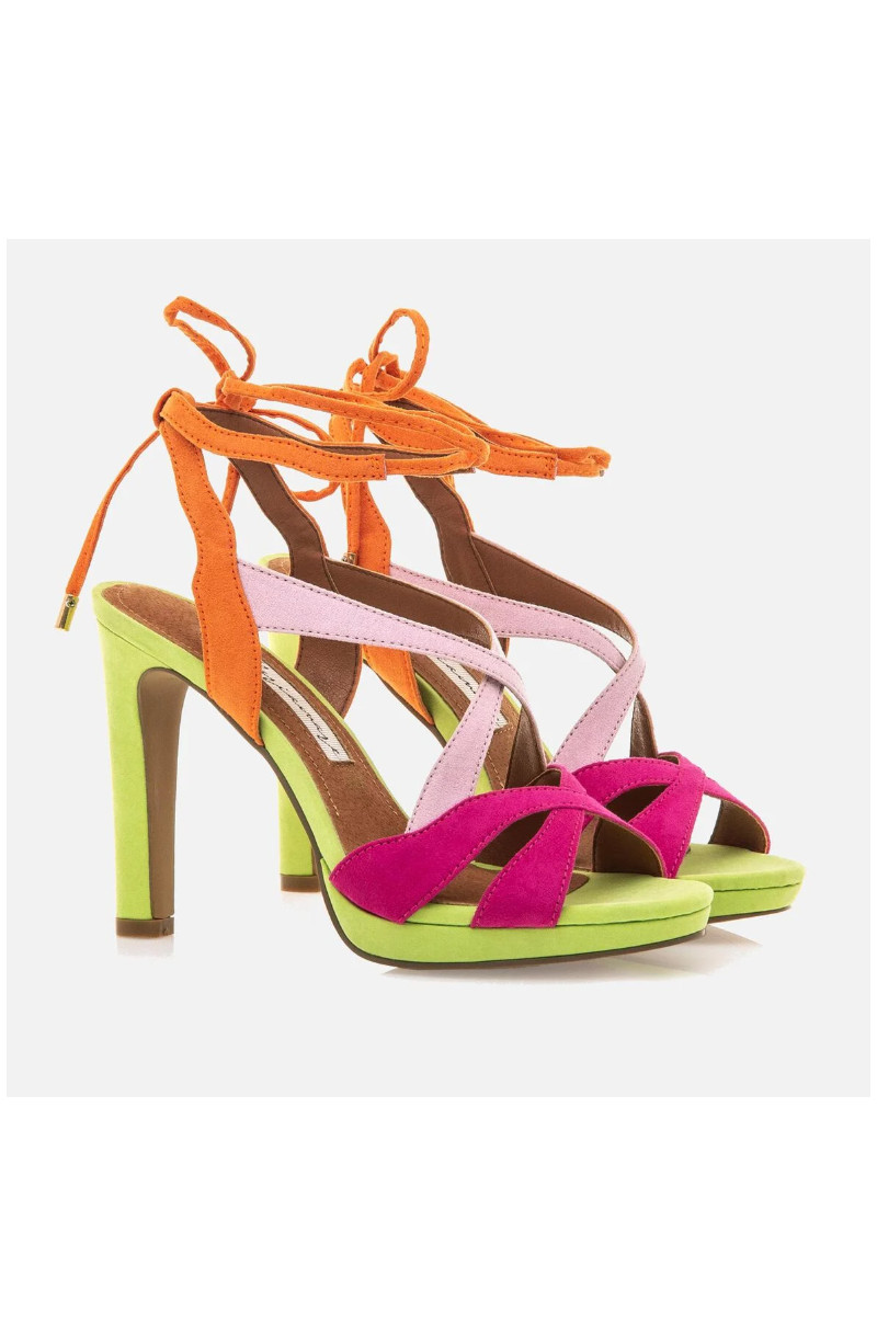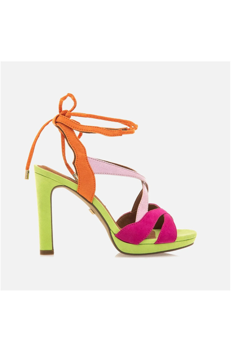 Zapato de tacón Acala Mariamare para mujer, diseñado en una combinación de colores verde lima, fucsia, rosa pastel y naranja. Fabricado con una plantilla de piel para una pisada más cómoda. Tiras para anudar al tobillo. Dale un toque de originalidad y color a tus looks.