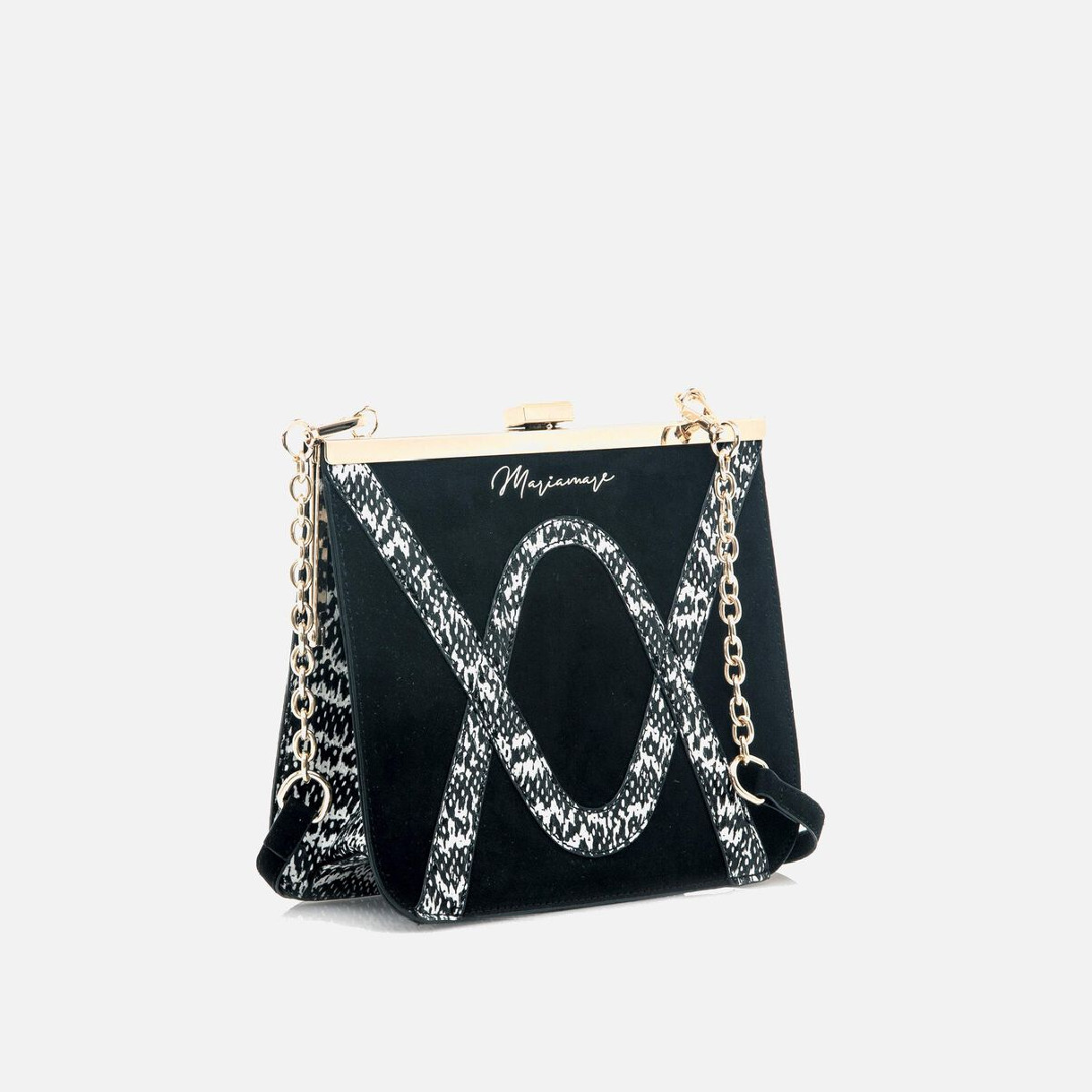 Bolso Patchi Mariamare para chica, de estilo clutch, diseño en color negro. Incluye un original diseño en piel de serpiente sintético de color blanco y negro. Su asa de cadena proporciona un toque de elegancia. Ideal para combinar con tus tacones Mariamare favoritos.