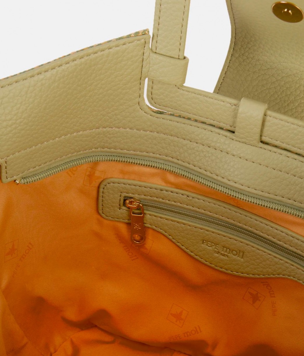 El bolso de mano 251120 de Pepe Moll es la elección perfecta para quienes buscan un accesorio sofisticado para esta primavera-verano. Su combinación de efecto rafia con detalles en color aporta un equilibrio perfecto entre modernidad y toques veraniegos.