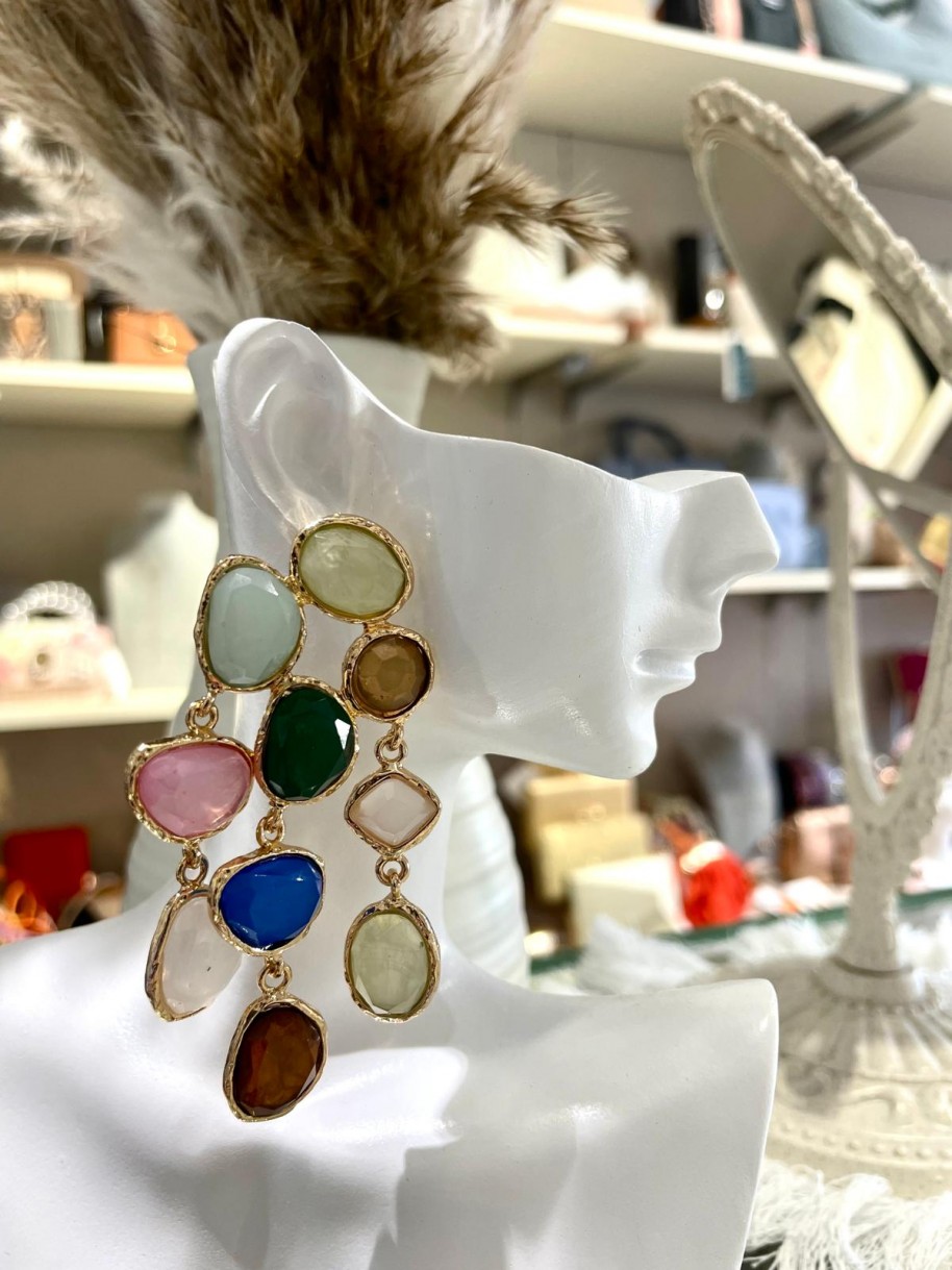 Pendientes largos multicolor P3107