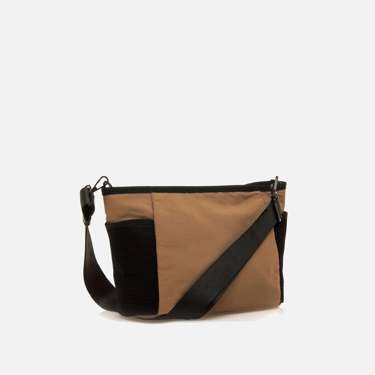 Bolso bandolera de color arena para mujer modelo Noca de Mustang, estilo urbano. Este bolso compacto de inspiración deportiva combina funcionalidad y estilo con detalles en negro y bolsillos de rejilla laterales. Incluye asa bandolera ajustable, cierre superior con cremallera, bolsillo frontal con cordón elástico y aplique de mosquetón en forma de estrella para un look casual y desenfadado. El logo frontal le da un acabado actual, ideal para llevar lo imprescindible en escapadas o actividades diarias con comodidad y un diseño diferente.