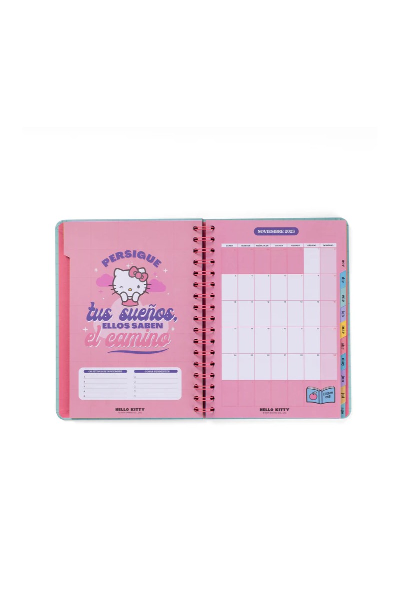 Agenda realizada en colaboración con Hello Kitty en la que ella comparte protagonismo con nuestros queridos personajes. La agenda cuenta con organización semanal y va de septiembre de 2025 a finales de agosto de 2026. Esta agenda contiene: