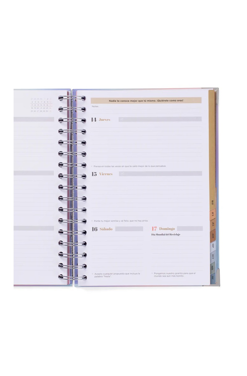 Agenda estilo Office de Mr. Wonderful, un diseño que presentamos hace algunas ediciones y que es algo más sobrio y contenido que nuestro estilo más clásico, por lo que encantará a un público más mayor. Esta agenda cuenta con 18 meses de organización: va de julio de 2025 a diciembre de 2026, con organización semanal. Esta agenda contiene: