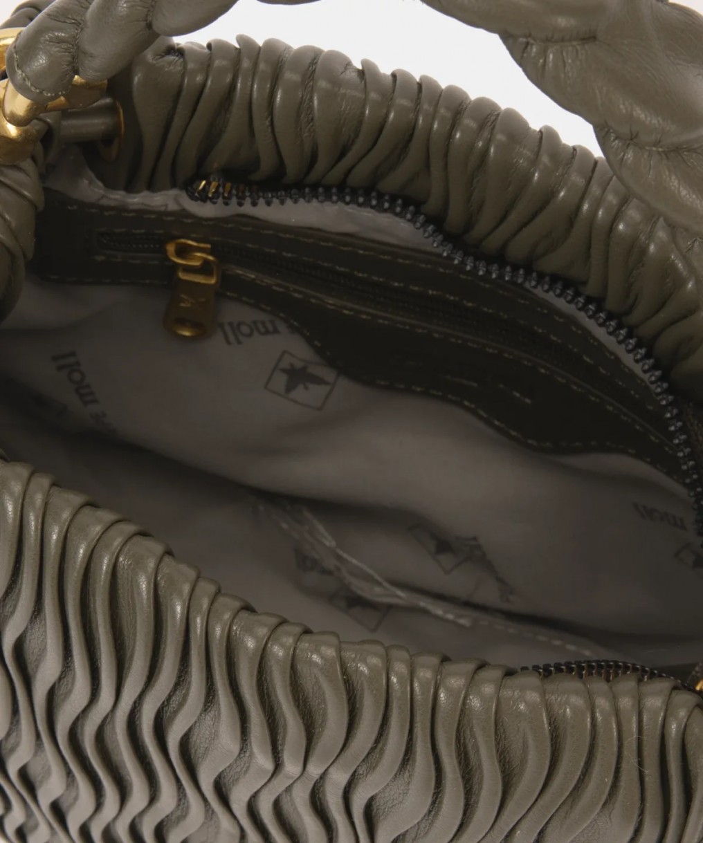 Compacto, moderno y con un diseño que marca la diferencia. El bolso de mano 252261 combina una silueta suave tipo saco con detalles dorados y una textura fruncida que no pasa desapercibida.