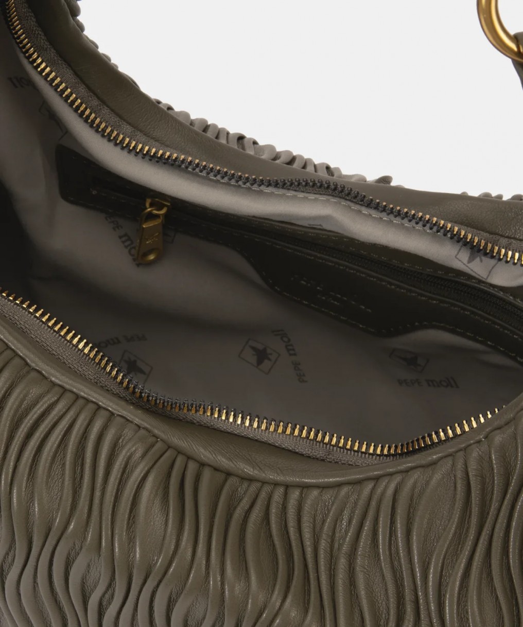 Diseño curvado, textura de ondas y detalles dorados que elevan cualquier look. El bolso de hombro 252262 de Pepe Moll es ese bolso que combina elegancia, comodidad y originalidad en una sola pieza.