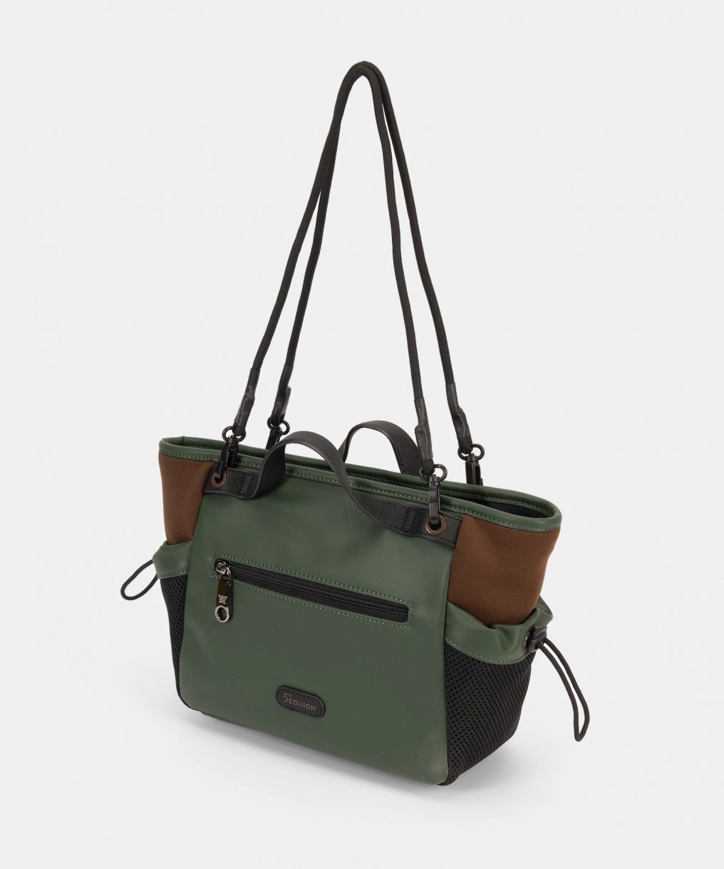 Diseño tote con asas de hombro ajustables y correa extraíble.