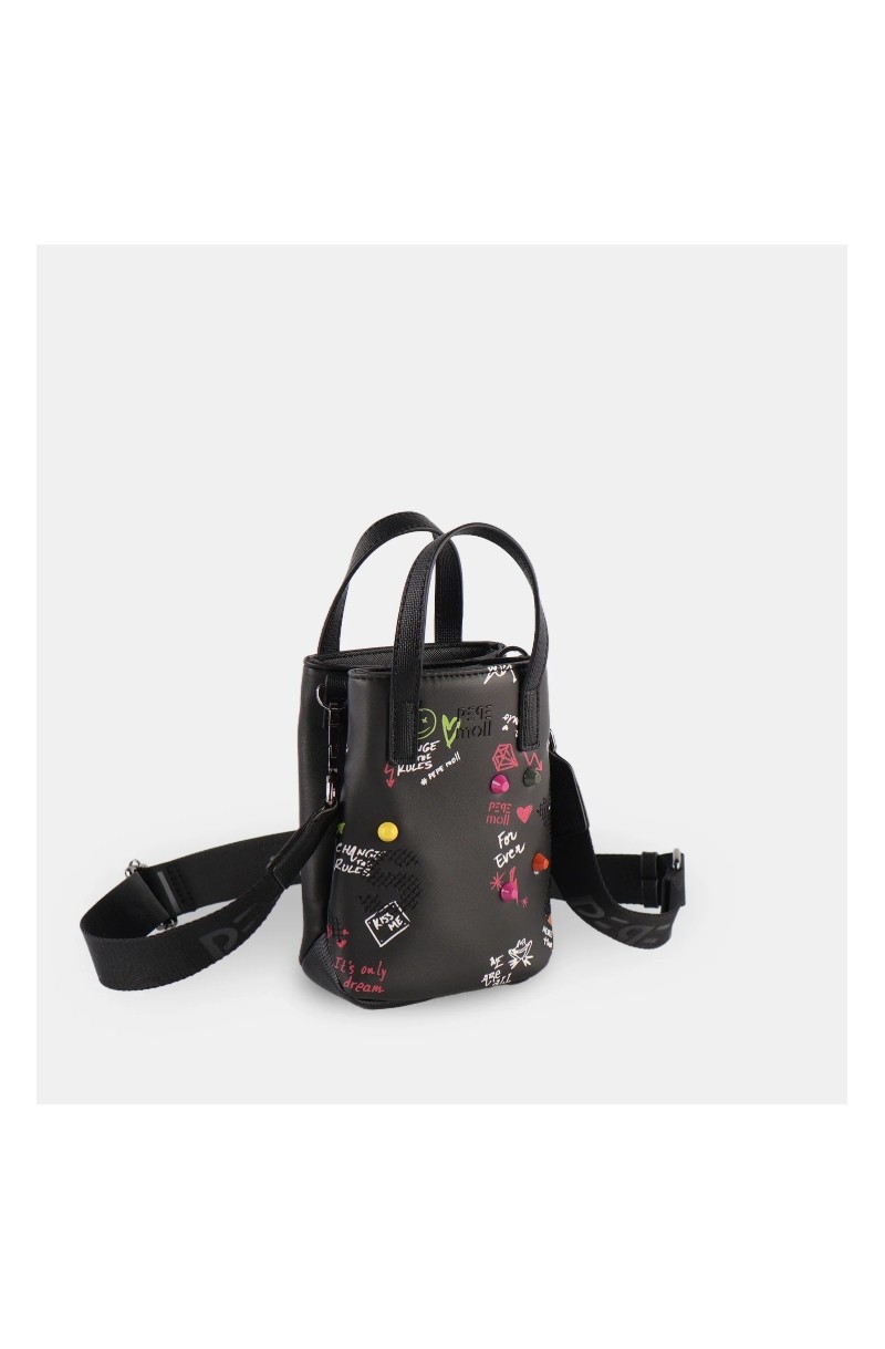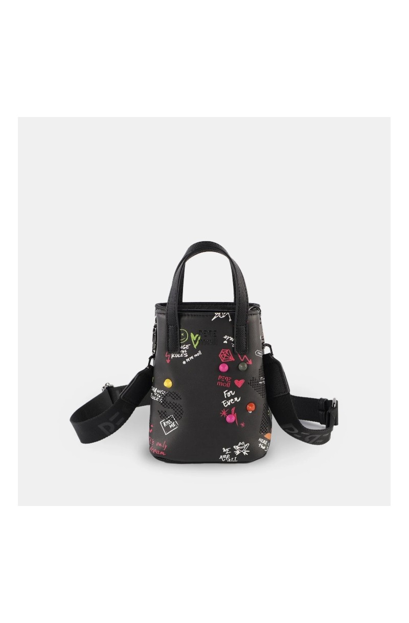El bolso bandolera 261231 está pensado para quienes buscan un formato práctico con un toque creativo. Su silueta estructurada y vertical lo hace cómodo y fácil de llevar, mientras que los detalles estampados y el relieve frontal aportan carácter y originalidad. Un modelo versátil que encaja tanto en looks casuales como en estilismos más urbanos.
